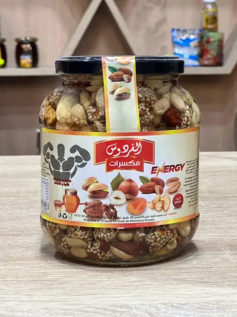 ✅المكسرات والعسل والتمر والزبيب وغيرها من المكونات الطبيعية التي تحتوي على العديد من الفوائد الصحية.