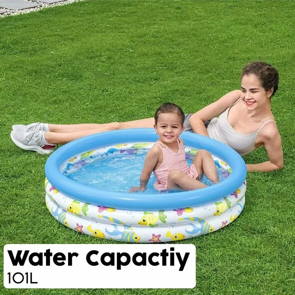 La piscine gonflable de Bestway 51008 avec une capacité d’eau de 101 litres , elle se compose de 3 anneaux d’air identiques assurent un maximum de confort et de sécurité pour vos tout-petits, fabriquée en film durable avec 3 larges chambres .Cette piscine est rapide à installer, il suffit de remplir les chambres à air avec de l’air puis de l’eau.Les enfants s’amuseront à coup sûr.